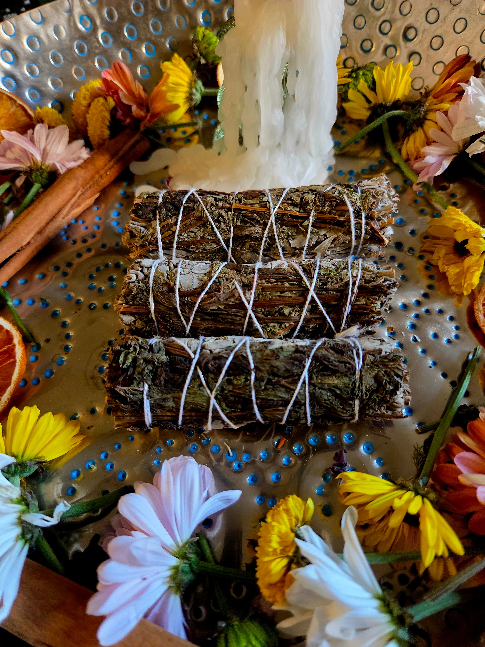This invigorating blend pairs the deep cleansing power of White Sage with the cooling, uplifting energy of Peppermint. Together, they create a refreshing and revitalizing smudge that clears stagnant energy while awakening the senses.